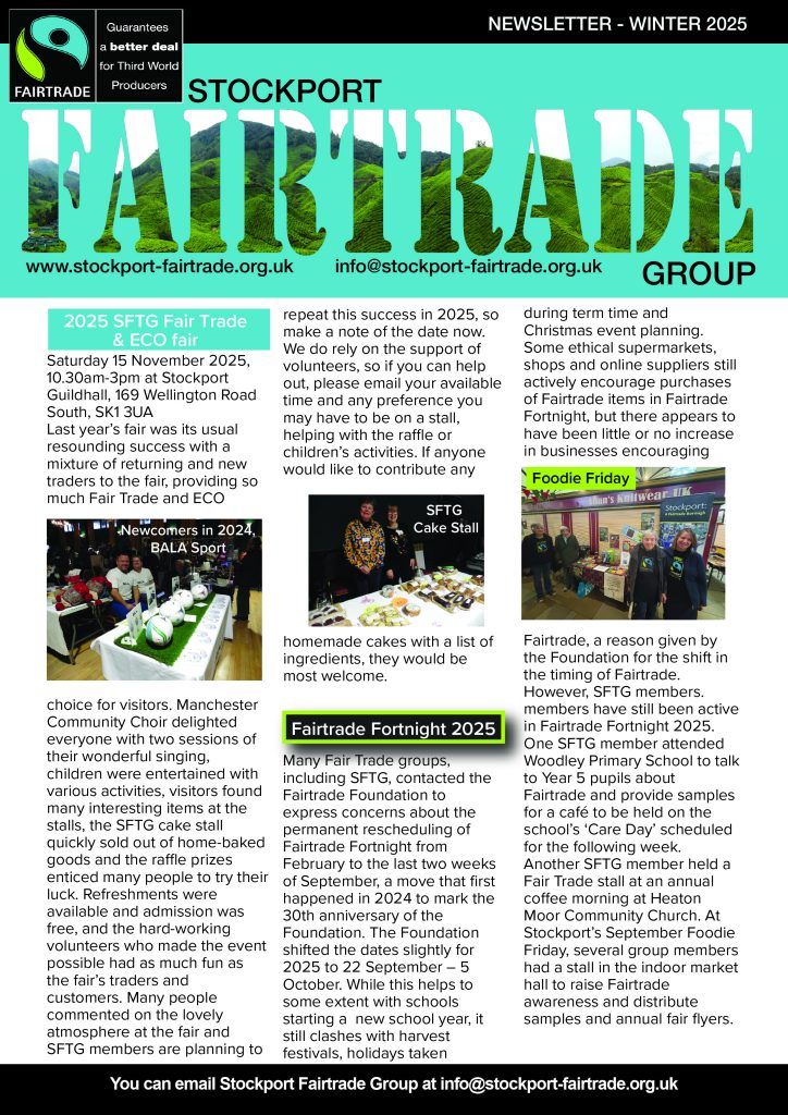 We publish a regular newsletter with information about Fairtrade and what our group is doing. Click on the link above to see our Winter 2025 edition